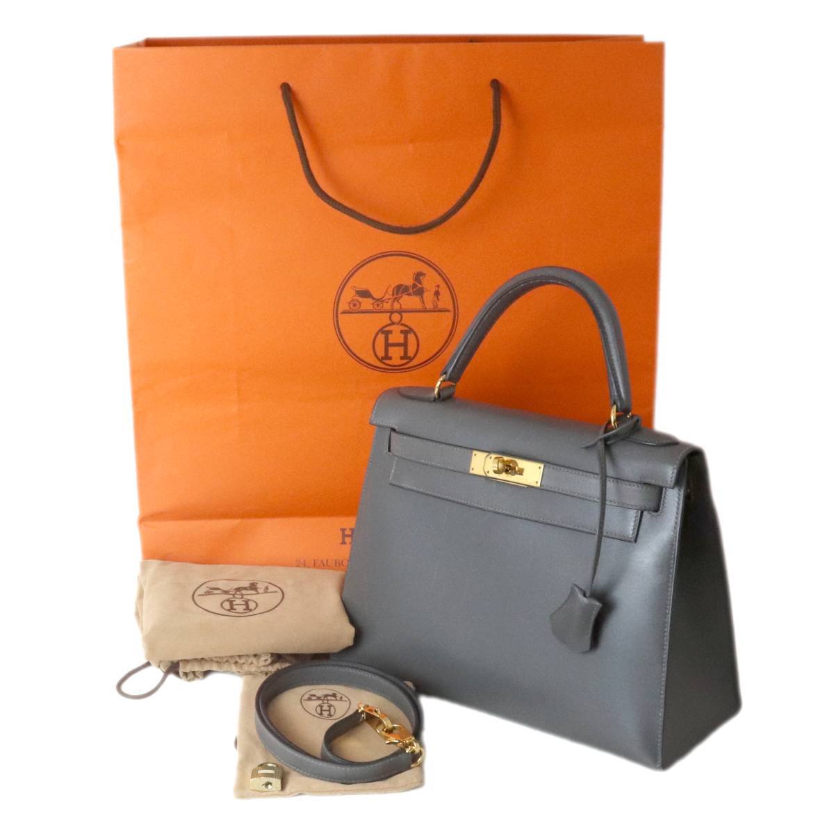 - HERMES エルメス ケリー 28 2wayバッグ ハンドバッグ ショルダーバッグ ボックスカーフ グレー □C(1999年製) NT Bランク