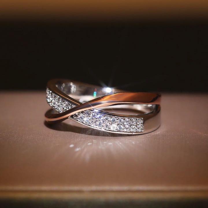 > クロスリング 指輪 レディース シルバー925 ジルコニア ツートンカラー ゴールド シルバー 人気 シンプル キレイ 新品