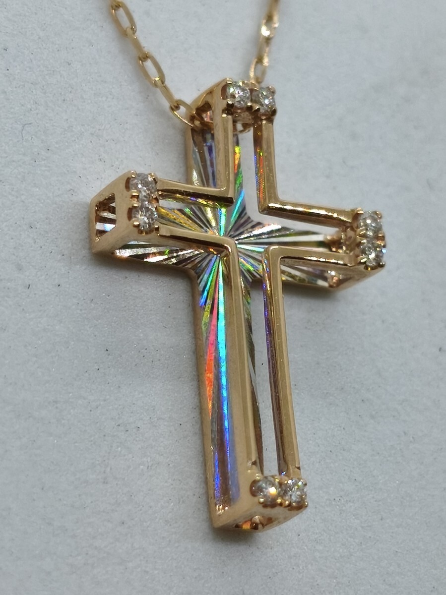 > ◆新品 半額◆ K18PG ダイヤ クロス ネックレス レインボーに輝く! ピンクゴールド