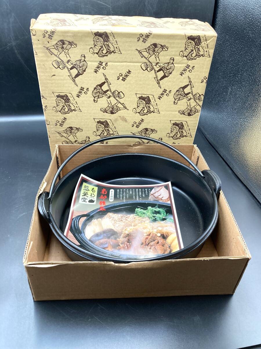 > ★処分間近★ツル付き 盛栄堂のすき焼き鍋 家族用 ファミリー 両手鍋 4~5人用 南部鉄器 居酒屋 中古品 直径約25㎝*B1459-1*