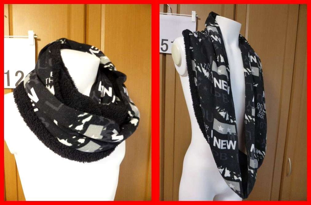 - 送料無料★メンズ用スヌード ブラック ストリート系のカッコいいプリント ボリューム感あるネックウォーマー マフラー