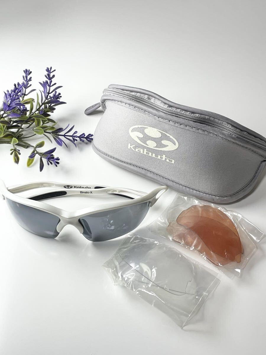 > 新品 OGK Kabuto Binato-X オージーケーカブト ビナートエックス ハーフリム スクエア型 ホワイト スポーツ サングラス 未使用品