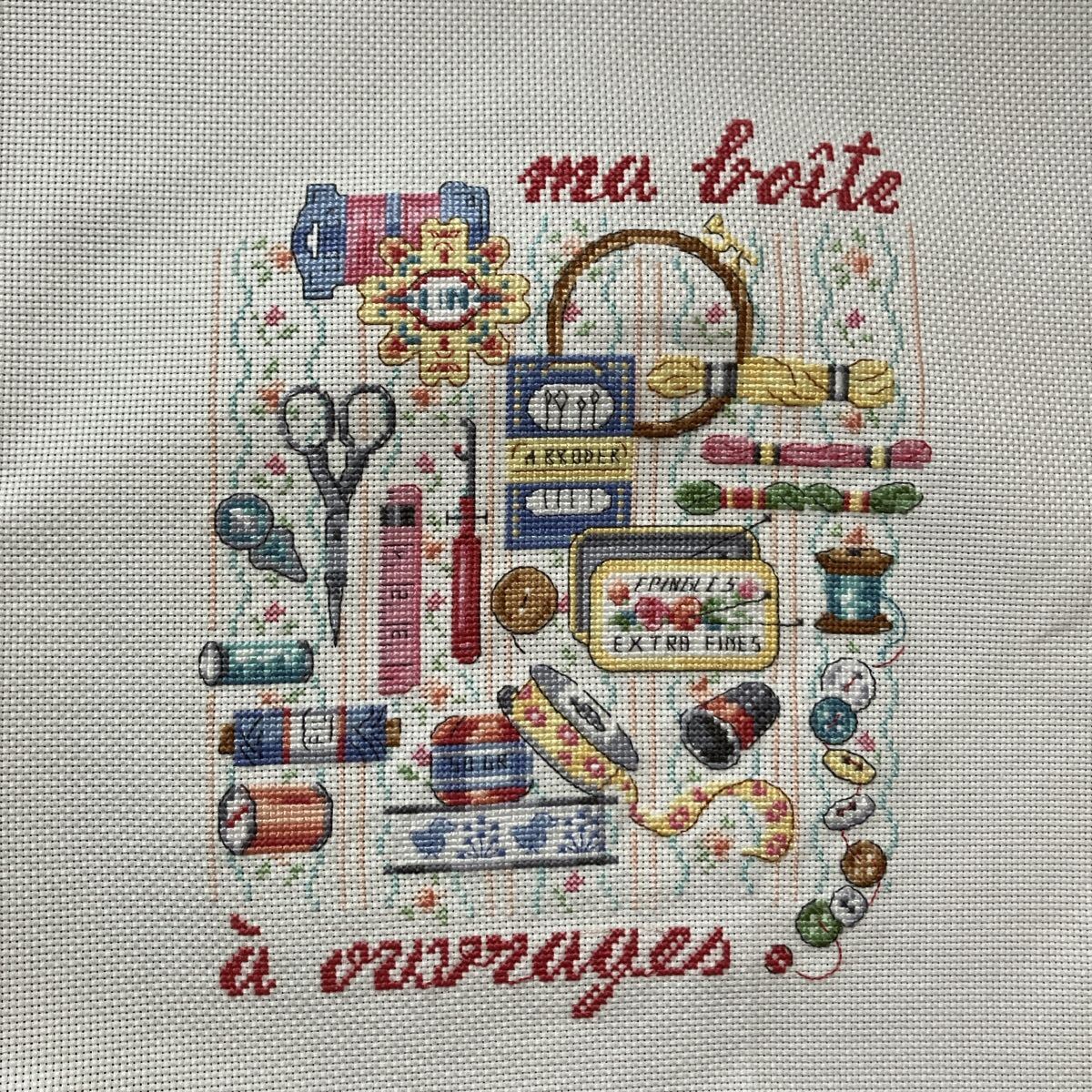 - クロスステッチ完成品 裁縫箱 ヴェロニクさん