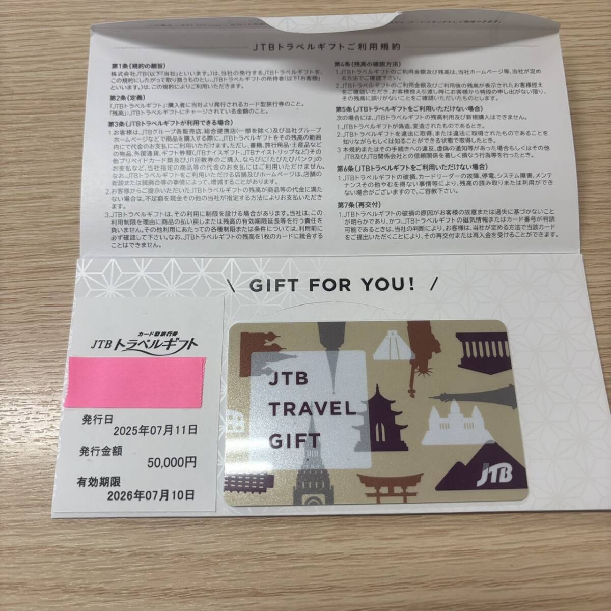 - ◇お得!JTB トラベルギフト カード型旅行券 5万円分 未使用 有効期限:2026年7月10日【4389MS】C27