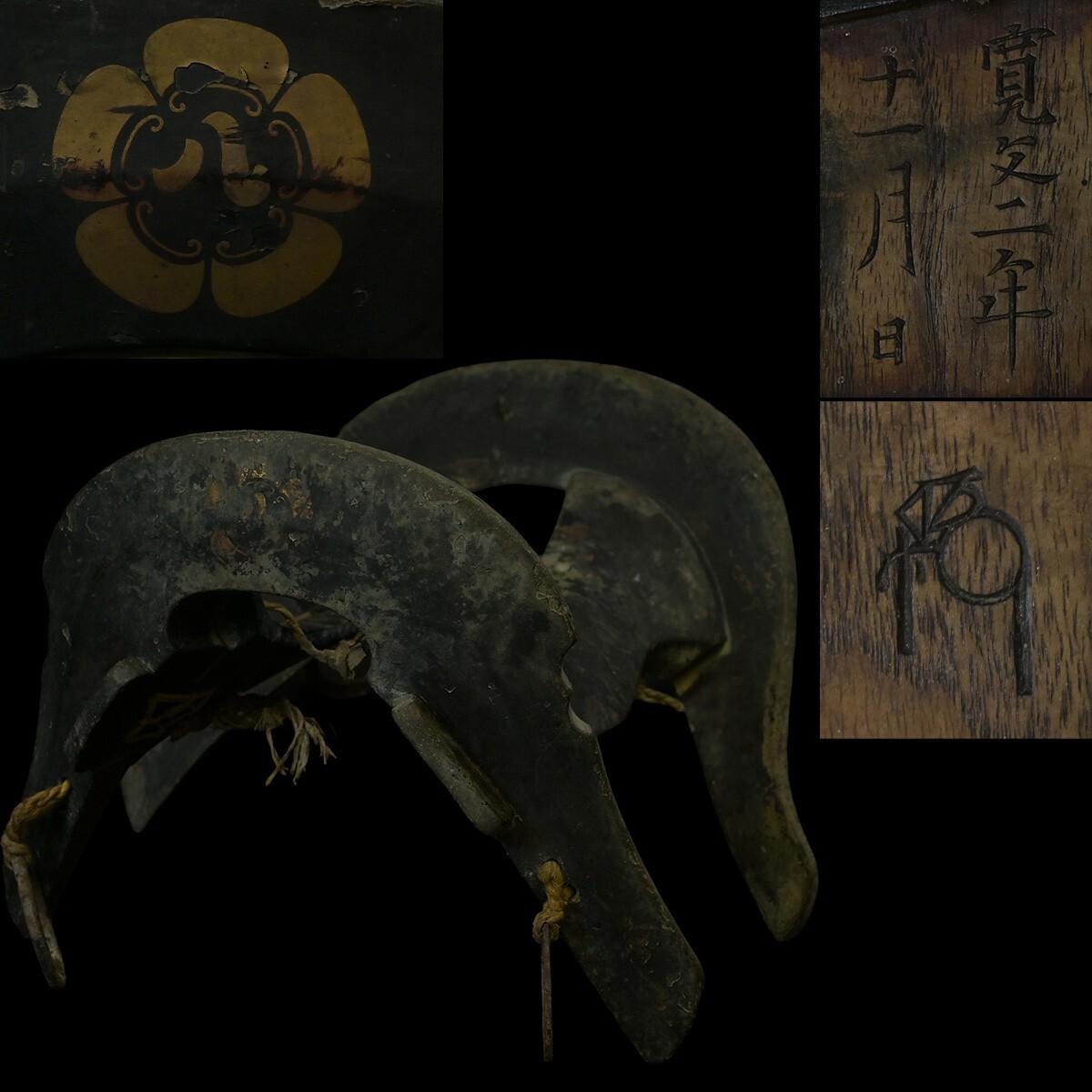 - 鞍 江戸期 寛文二年十一月 木瓜八文字家紋 黒塗鞍 在銘 武具 蒔絵 漆芸 時代 古道具 馬具 馬装備 江戸時代