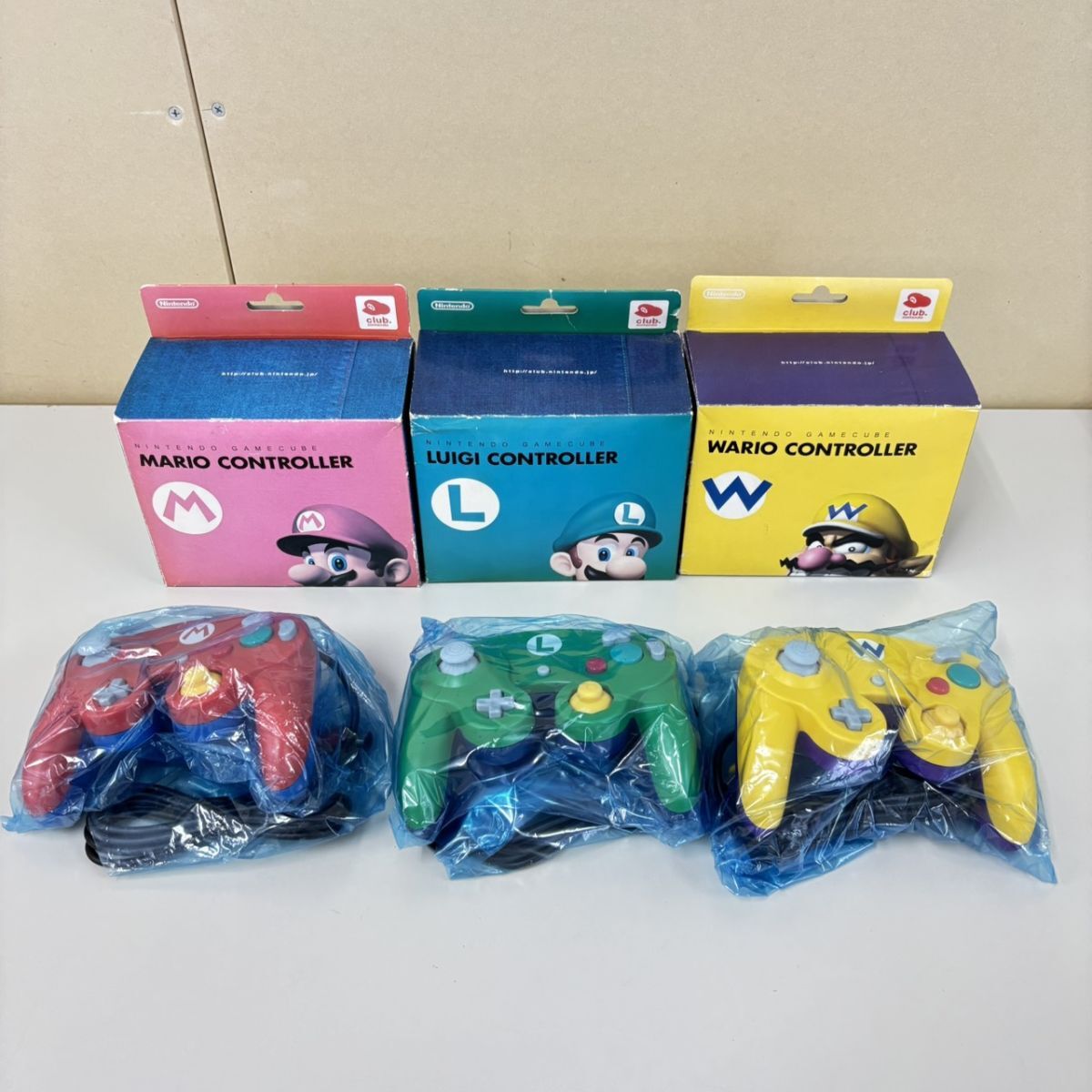 > H348-M29-2056 NINTENDO GAMECUBE Controller DOL-003 3点セット オリジナルデザイン マリオ ルイージ ワリオ club.nintendo TE