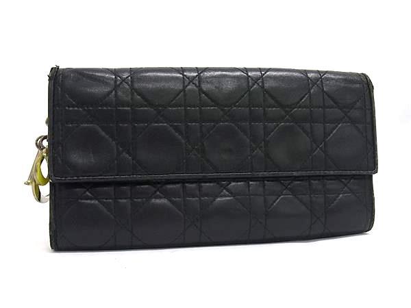 - 1円 ChristianDior クリスチャンディオール カナージュ レザー 二つ折り 長財布 ウォレット 小銭入れ 札入れ ブラック系 FX3792
