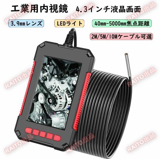 - ァイバースコープ 産業用内視鏡 3.9mmレンズ 6つの調整可能なLEDライト 1080Pスコープカメラ 4.3インチ液晶画面 40mm-5000mm焦点距離 (5m)
