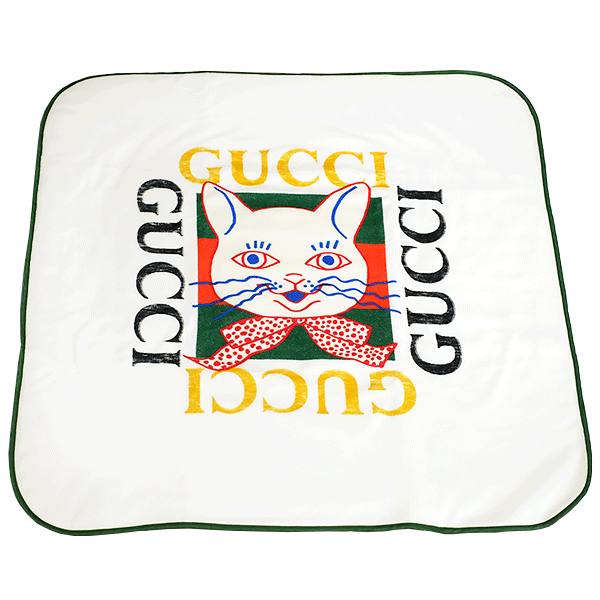 - 送料無料 本物 1円~ GUCCI グッチ ヒグチユウコ コラボ 615907 コットン100% 猫柄ブランケット ホワイト インテリア ひざ掛け キャット