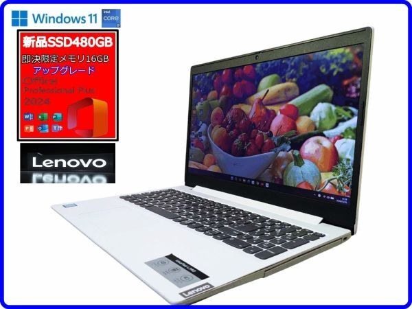 > ★8世代CoreI7★即決限定メモリ16GB★新品SSD480GB Lenovo 81LG/15液晶 Windows11/DVD/Office2024/Webカメラ/ホワイト