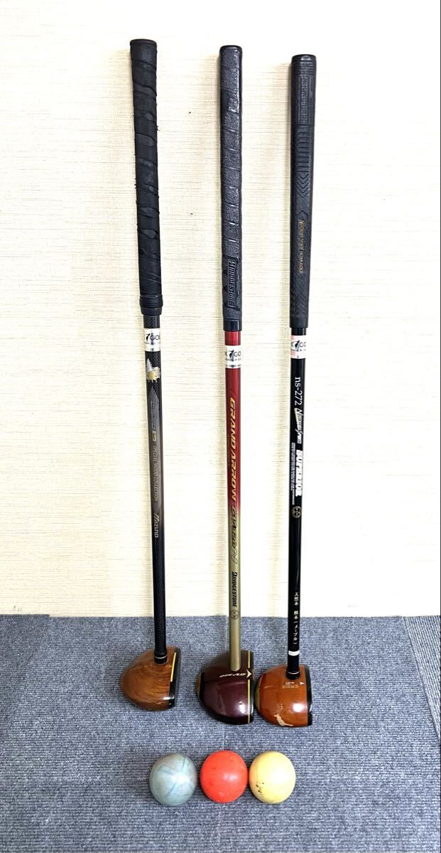 > ミズノ LS-500 NORTHWAY SPORTS NS-272 ブリジストン GV-320 パークゴルフクラブ 3本 ボール3個付 右打ち 全長約85㎝ 0403③
