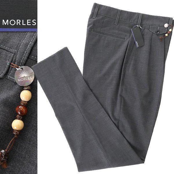 > 新品 BEAMS監修 モアレス 2プリーツ インタック トロピカル ウール パンツ S 灰 【P32700】 MORLES ビームス 春夏 メンズ スラックス