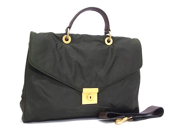- 1円 ■美品■ JILLSTUART ジルスチュアート ナイロン×レザー 2WAY ハンドバッグ ショルダーバッグ カーキ系×ブラウン系 HA3517