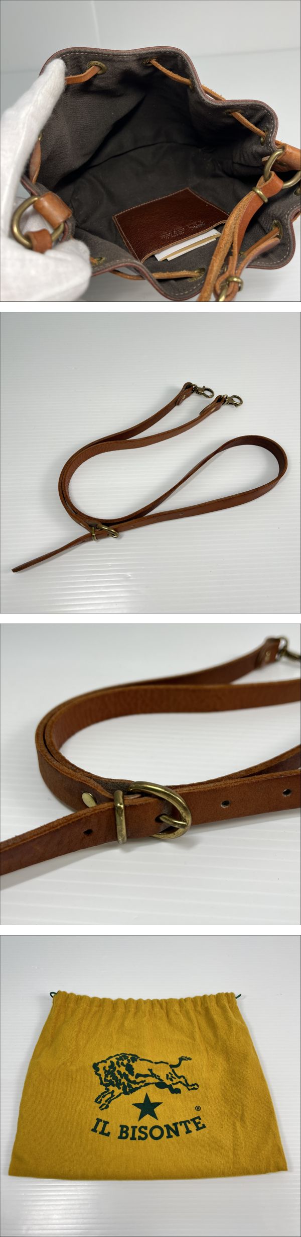 - 2603M2105 IL BISONTE イルビゾンテ レザー 巾着型 ショルダーバッグ 斜め掛けバッグ ダークブラウン×ブラウン
