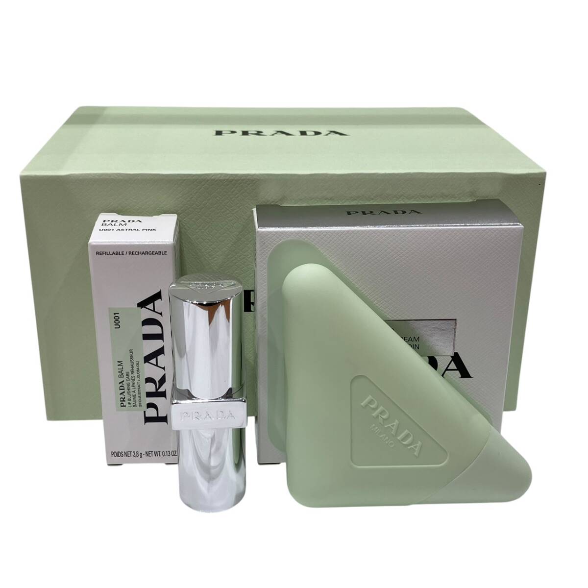 - PRADA プラダ ビューティー ハンド トリプルケア ハンドクリーム 50ml リップバーム ブラッシングケア U001 3.8g 2点セット ボックス付き