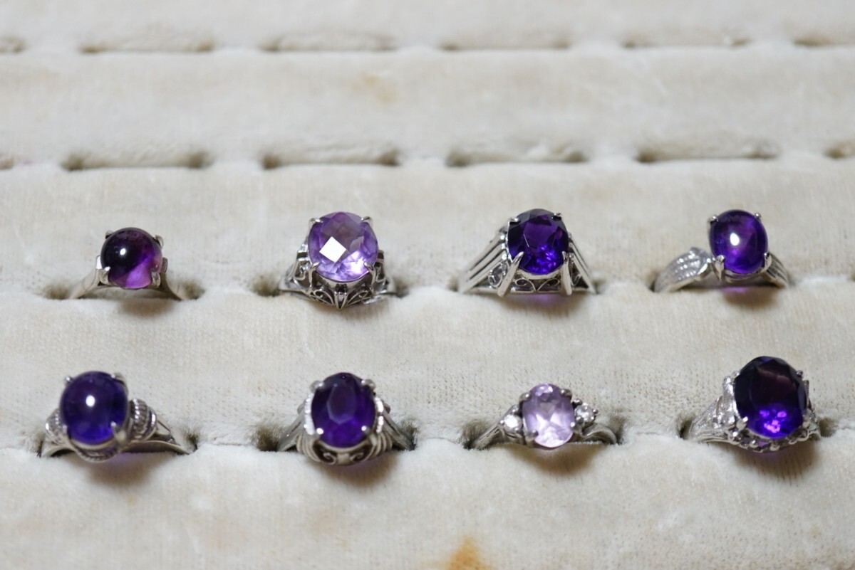 - B2004 アメジスト リング 指輪 ヴィンテージ アクセサリー カラーストーン 大量 セット まとめて おまとめ まとめ売り 紫水晶 SILVER含む
