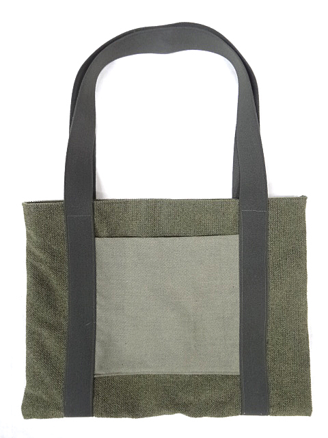 > ユニセックス デザイン モスグリーン 苔 色 ウール コットン ツイル キャンバス ストラップ コンビ スクエア トート ショルダー バッグ 緑