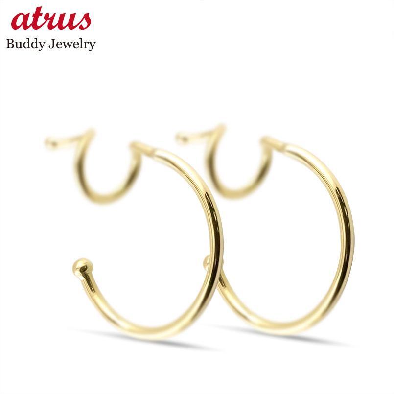 - ピアス 18金 つけっぱなし ペア キャッチのいらない フープ イエローゴールドk18 キャッチナッシャー 簡単装着 シンプル