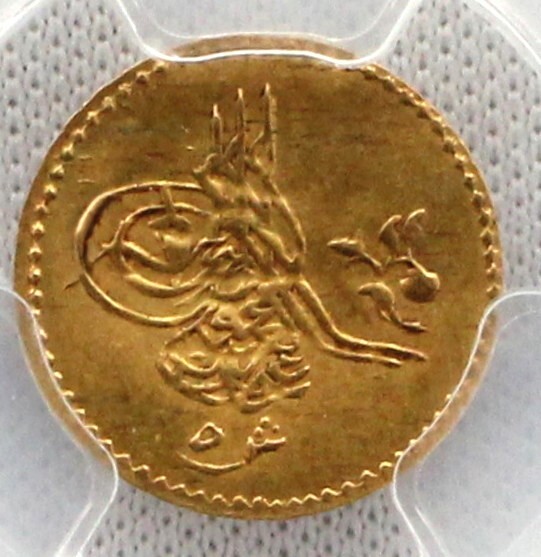 - AH1277//4(1863) エジプト 5クルシュ 金貨 PCGS MS62