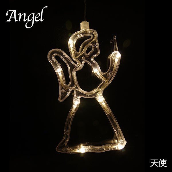 - 【送料無料】LEDイルミネーションライト エンゼル 暖色 電源(単3電池) 吸盤貼付け X'mas クリスマス ハロウィン オーナメント 天使形