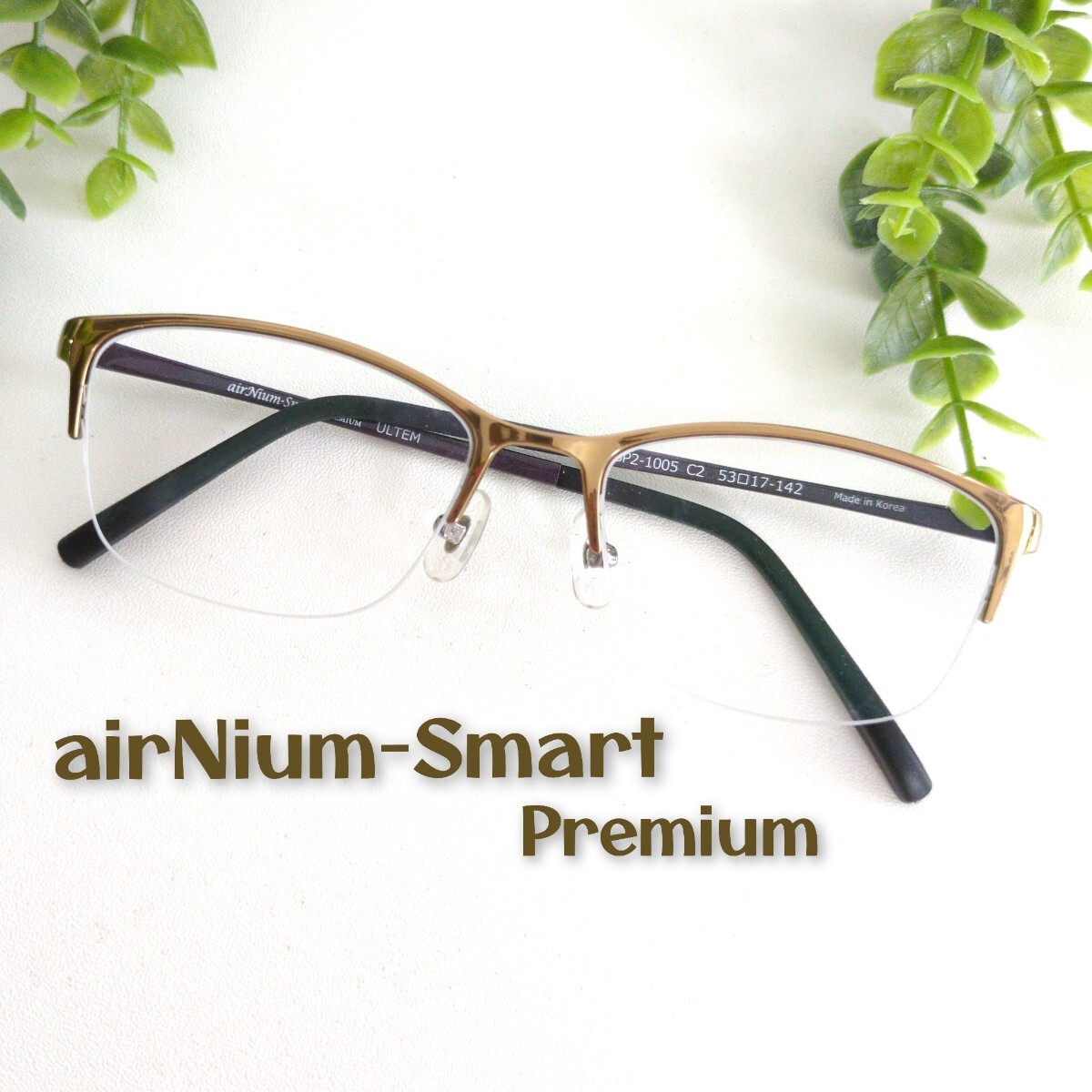 > 良品☆airNium-Smart メガネ 眼鏡 ハーフリム ゴールド ナイロール スクエア ウェリントン ユニセックス ブロー 軽量 オシャレ ビジネス