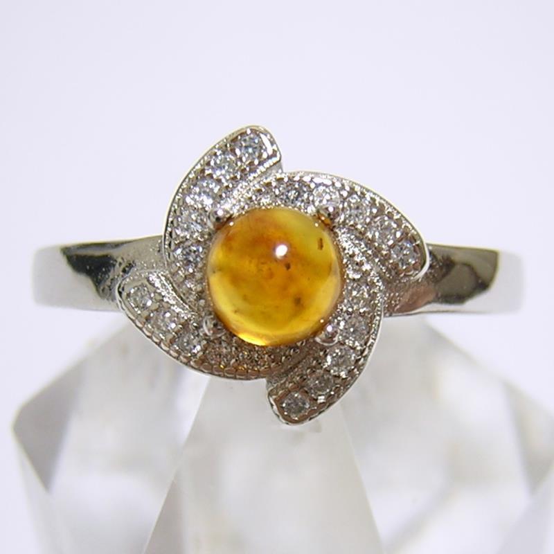 - 『天然アンバー』 琥珀 デザインリング 指輪 16号