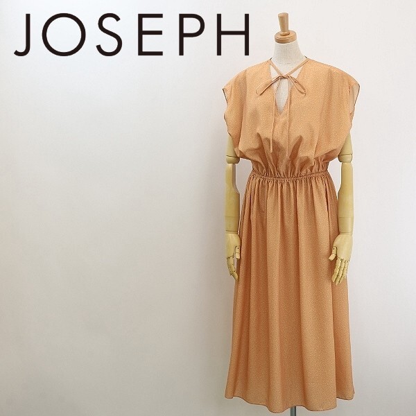 - 【FA209】美品◆JOSEPH ジョゼフ 総柄 リボン フレンチスリーブ ブラウジング ロング ワンピース ライトオレンジ 38