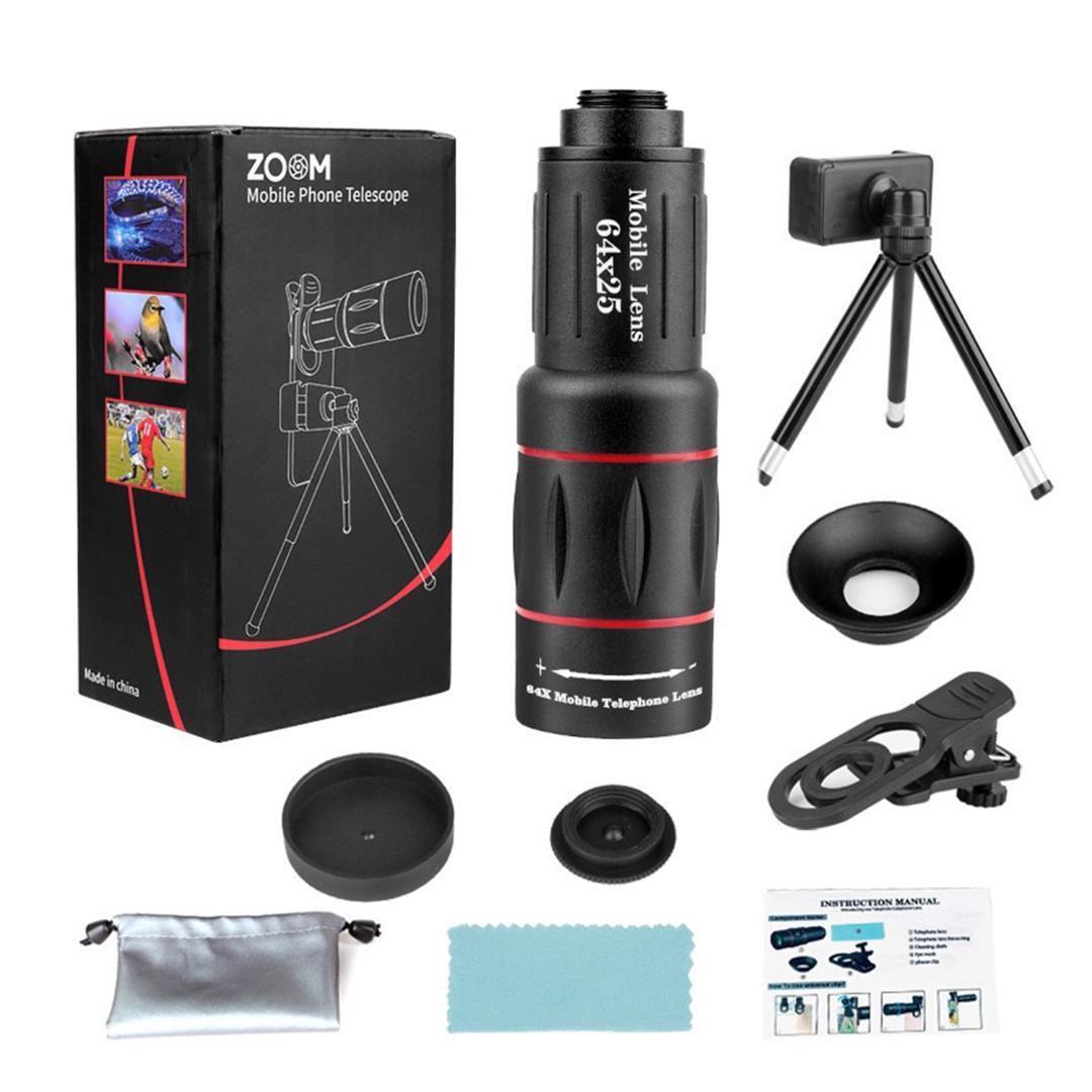 - スマホ用カメラレンズ スマホ 拡大レンズ 望遠レンズ 64倍 三脚セット