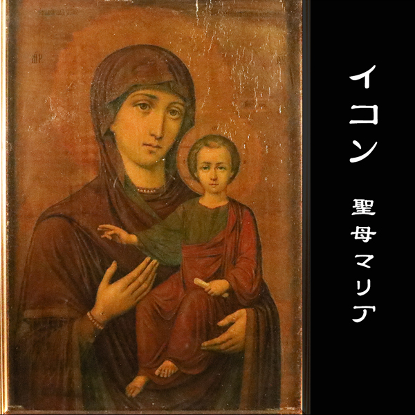 - ◇雅◇ ロシア正教会 イコン 肉筆油彩 聖母マリア キリスト教 時代物 宗教画 板絵 貴重 宗教板画 聖像画 仏教美術 額装/HK.25.11 [C224] OU