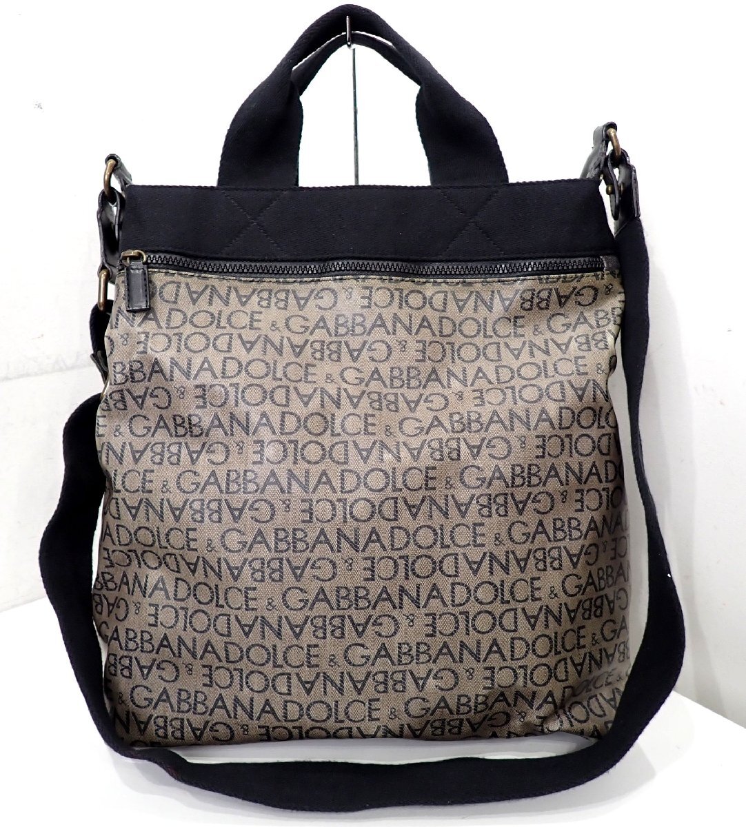 > ドルガバ M131 2WAY キャンバス 総柄 ブリーフケース ショルダーバッグ トートバッグ ブラック メンズ 書類バッグ 4738