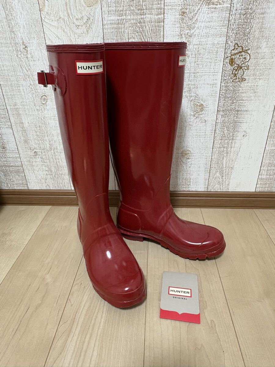 - 24.5~25㎝★美品 HUNTERレインブーツUK6 ハンターブーツ 長靴 グロスレッド ロングブーツ