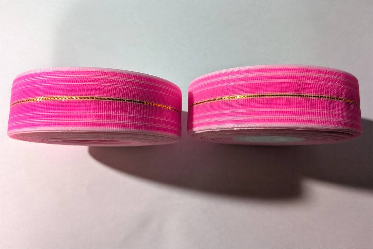 - ピンクのリボンラッピングリボン 25mm幅が2本セット (昭和レトロ感あふれる可愛いリボン、プレゼント包装に)