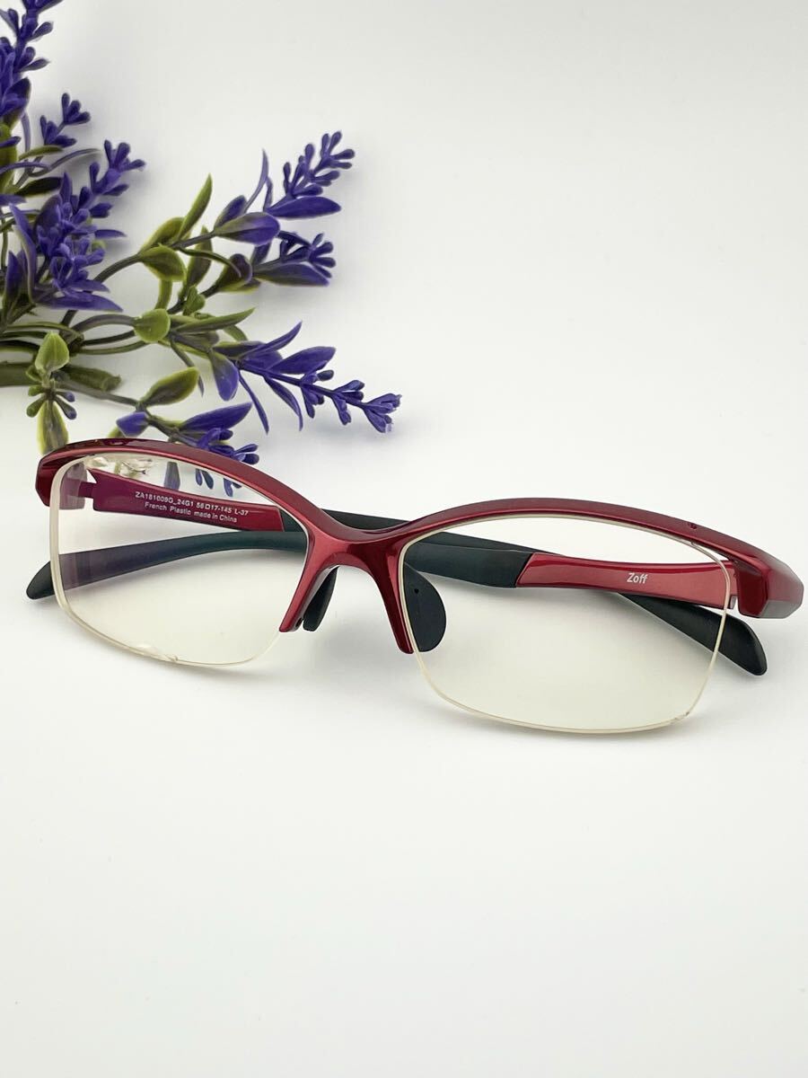 - Zoff ATHLETE ACTIVELINE ZA181009 ゾフ ハーフリム スクエア型 レッド 眼鏡 良品