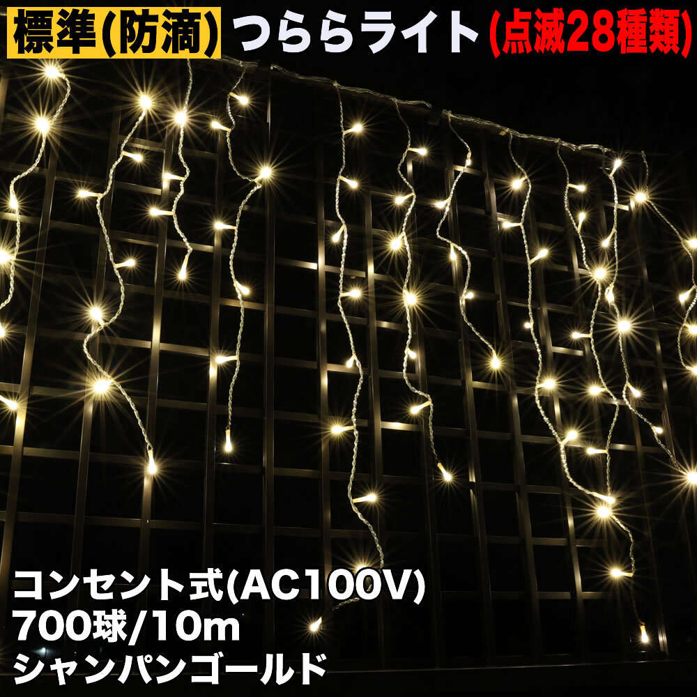 - クリスマス 防滴 イルミネーション つらら ライト LED 10m 700球 シャンパンゴールド 電球色 28種点滅 Bコントローラセット