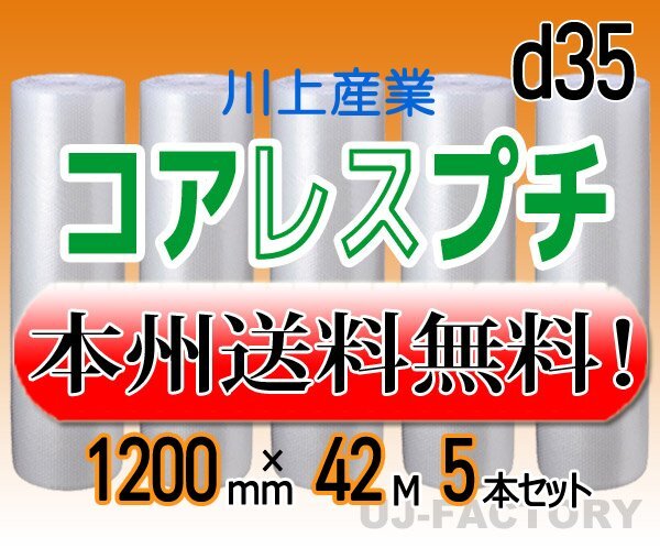 > 【送料無料!/法人様・個人事業主様】川上産業/コアレスプチ(紙管無し) 1200mm×42m (d35) 5本set★ロール/シート/エアーキャップ/梱包材