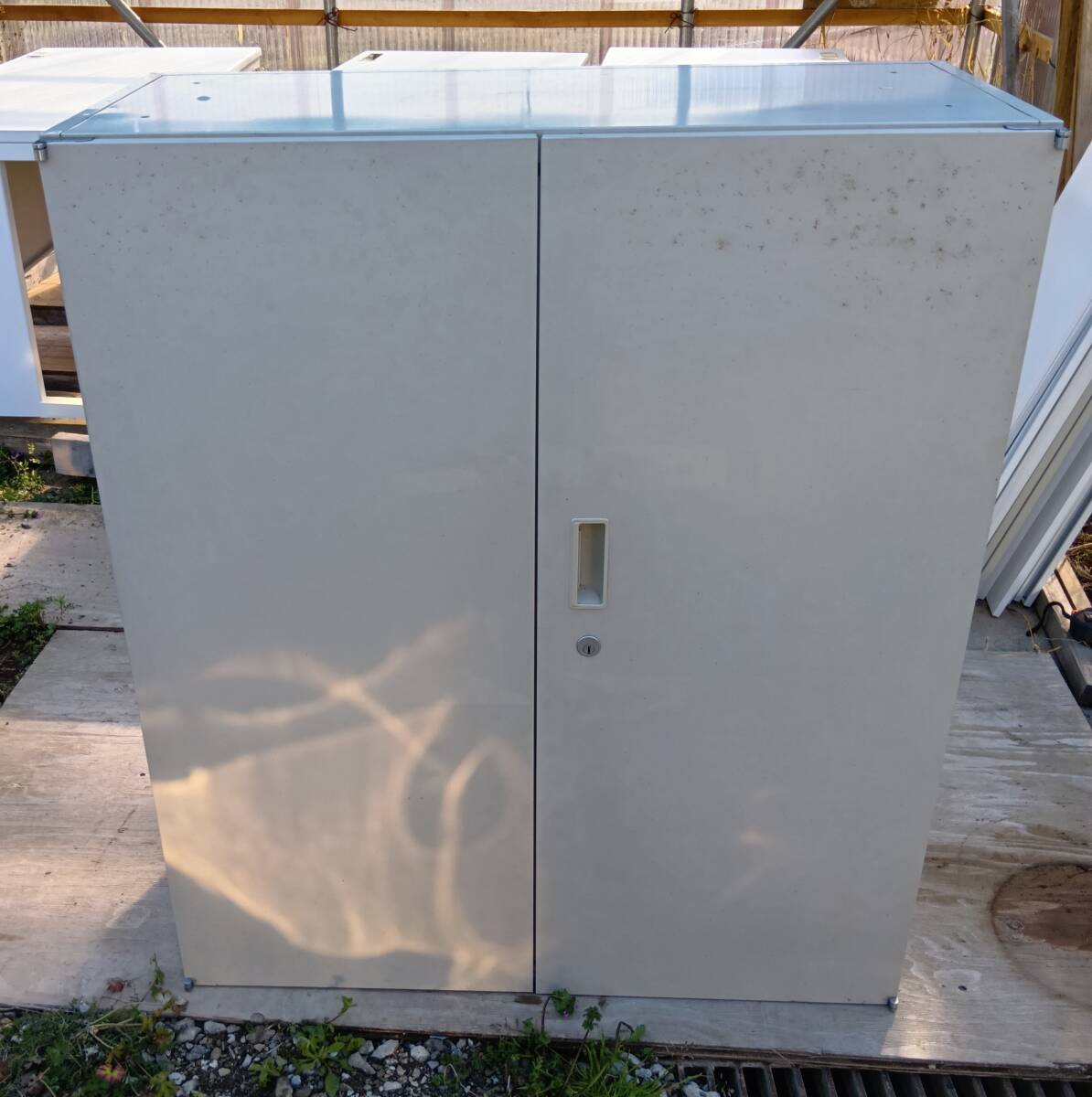 - 事務 キャビネット 両開き 横幅750㎜ 奥行き400㎜ 高さ1110㎜ 棚板2段 中古