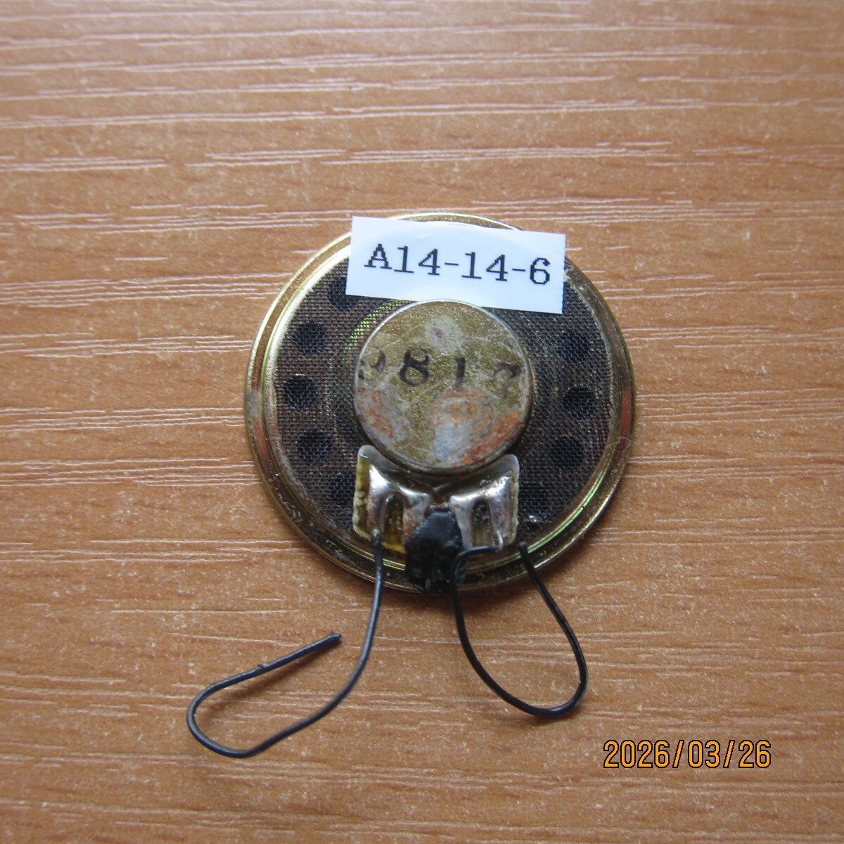 - 小型スピーカー φ28mm 厚み4mm 8Ω 0.2W程度 A14-14-6