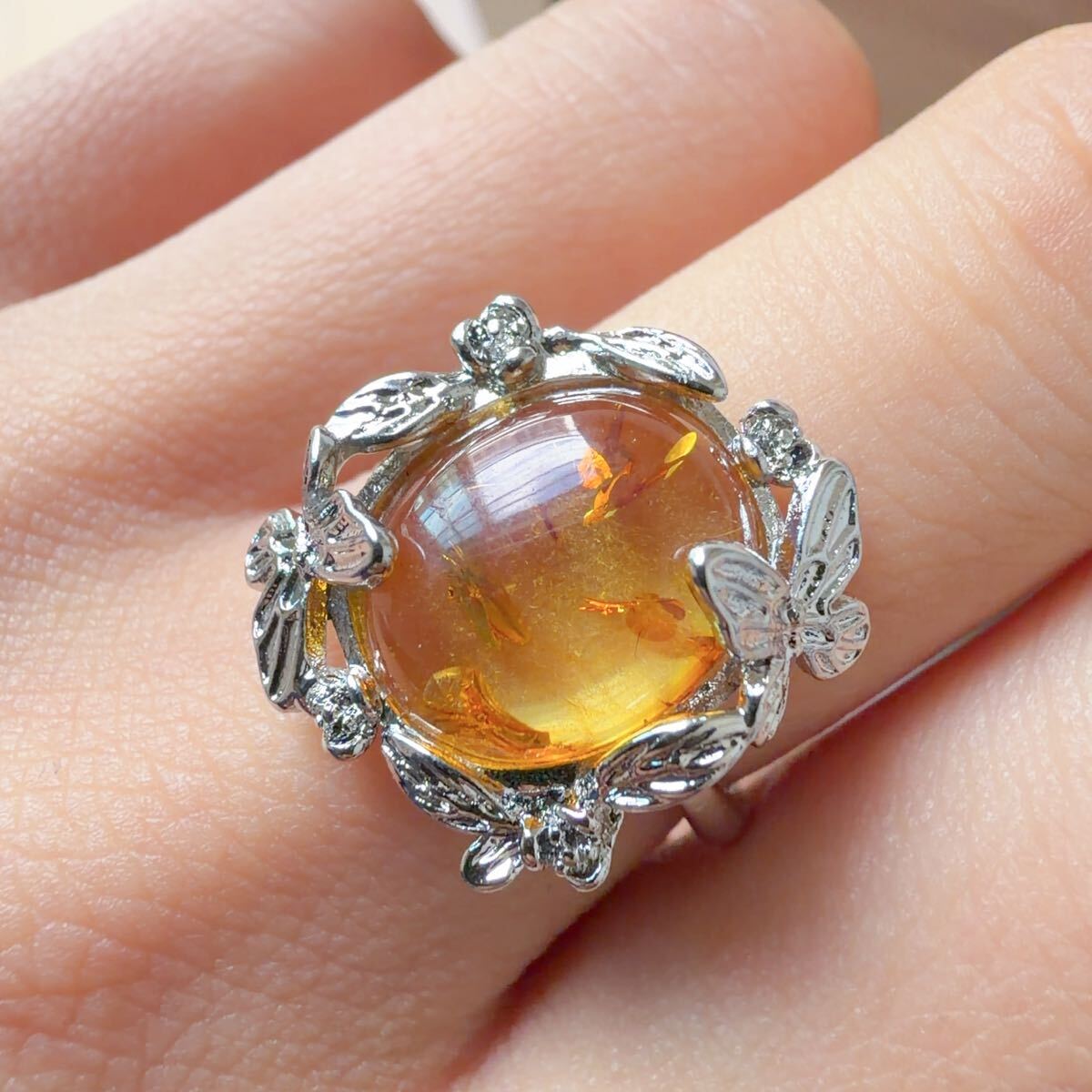 - ◇アンバー琥珀(花珀)◇指輪◇リング◇フリーサイズ◇パワーストーン◇天然石◇巾着袋付き◇プレゼントにも044R32602