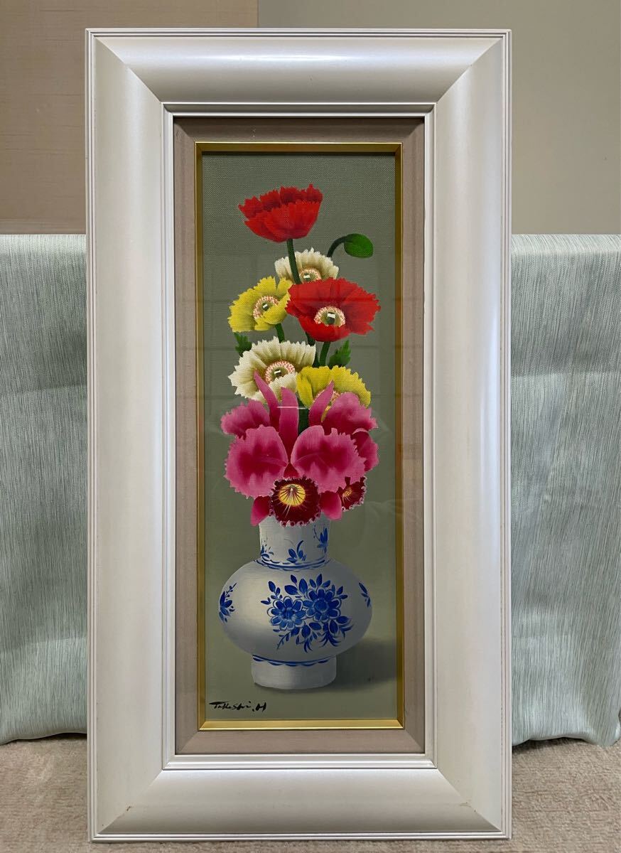 - 【真作】広井丈司 「ポピー」油彩画 花瓶 花 静物画 額装 インテリア 美術品 油彩 油絵