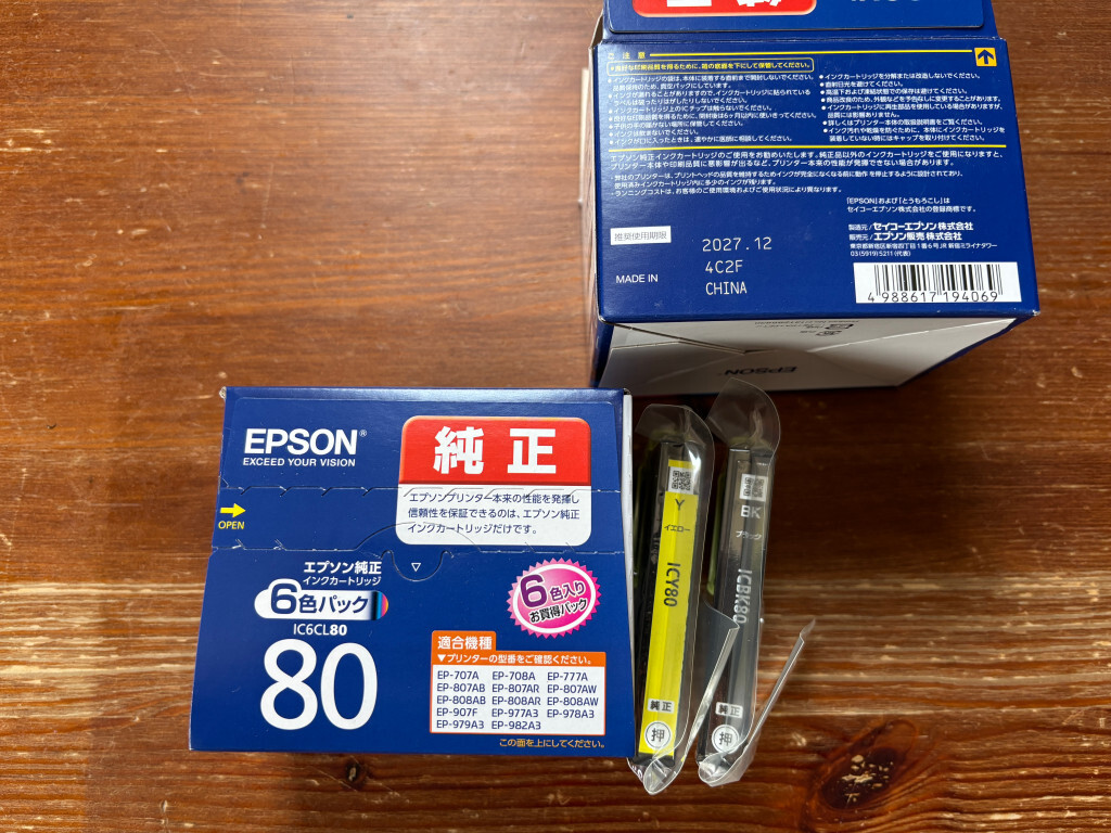 - 新品未開封 期限27.12 IC6CL80 エプソン 純正インク とうもろこし 6色パック+黄黒