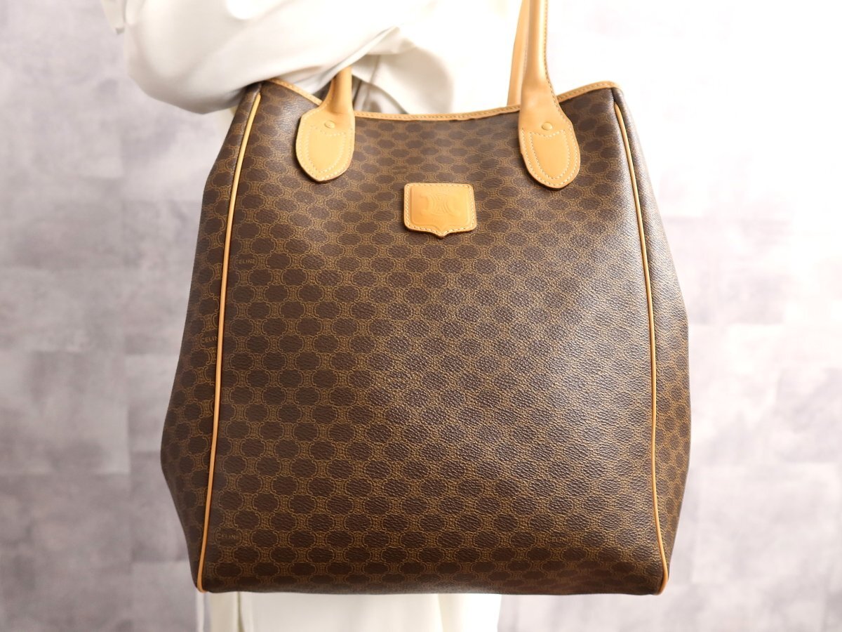 > ●超美品●CELINE セリーヌ●マカダム●PVC カーフ レザー 本革●ショルダー トート バッグ●ブラウン系●ゴールド金具●B5 収納●Js66534