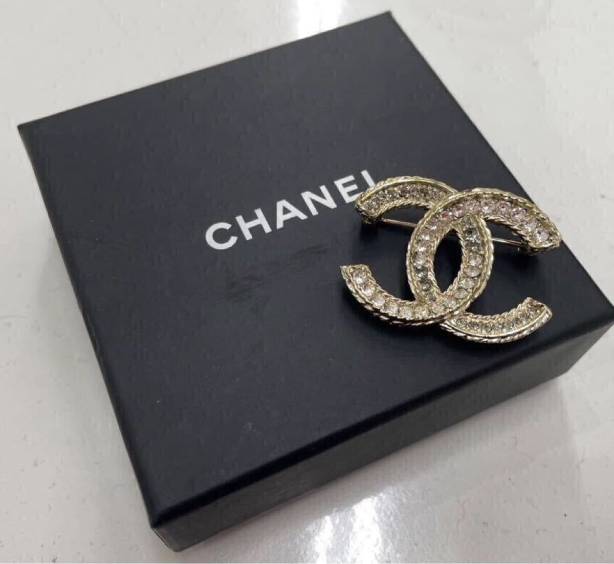 > イ) CHANEL ブローチ CCロゴ ココマーク コメ ヴィンテージ ラインストーン シャネル アクセ 約4cm B17V