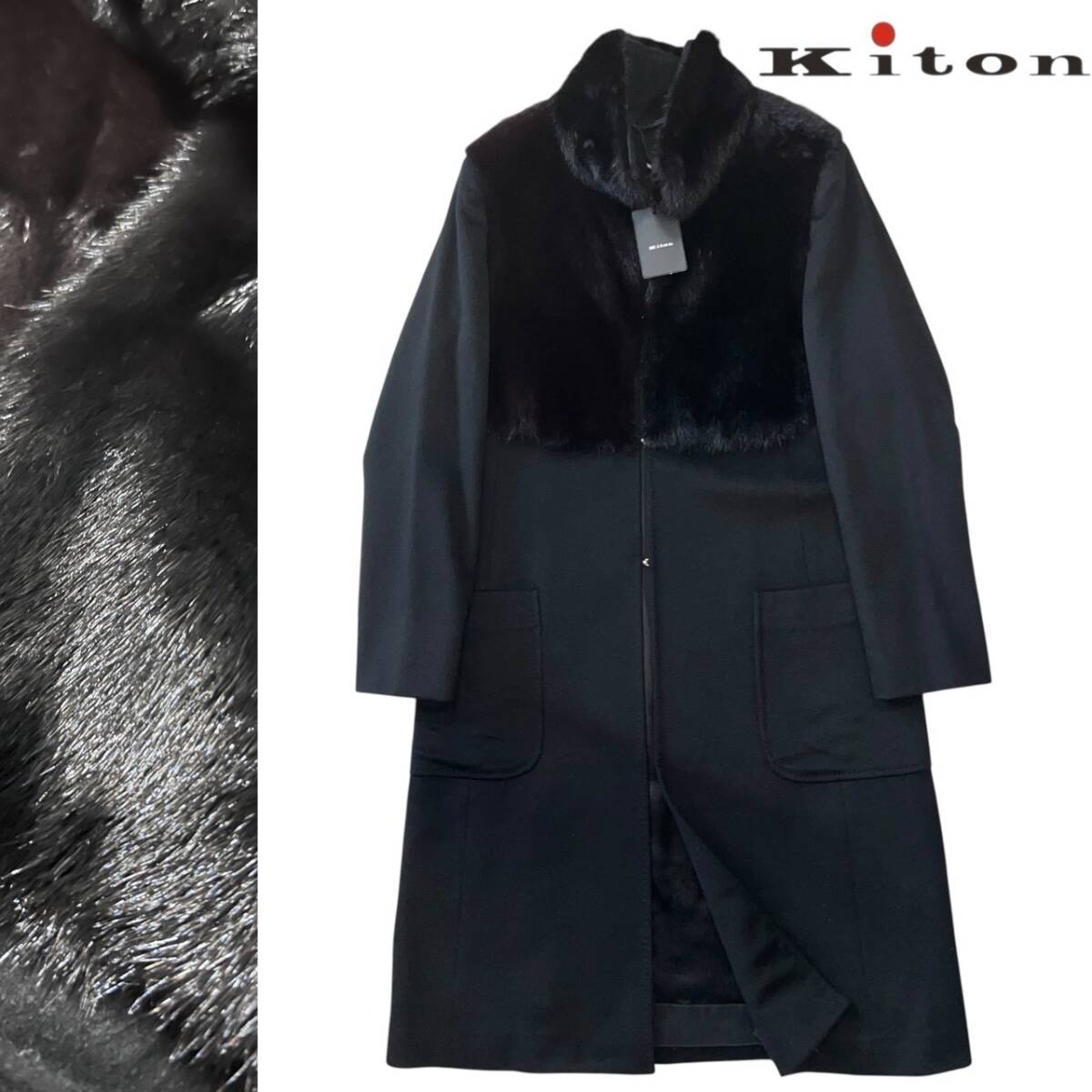 - 253万 Kiton ミンク毛皮 ピュアカシミア100% ロングコート 黒 88KLF2