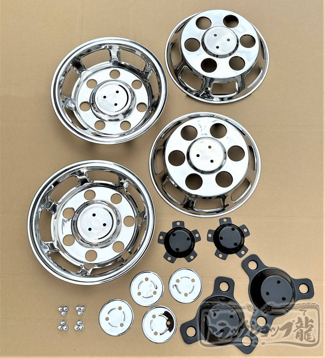 > 1円~ステンレス ホイールライナー ホイールカバー 17.5インチ 6穴 前後4枚セット 日野 レンジャー G1016S