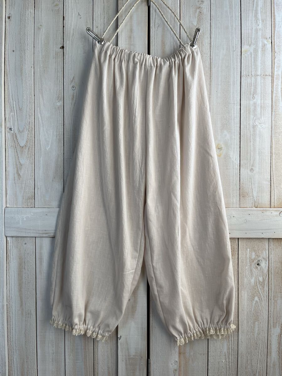 - CHハンドメイド♪ゆったりかぼちゃ型ペチパンツ♪コットンスラブワッシャー♪アイボリー♪トーションレース