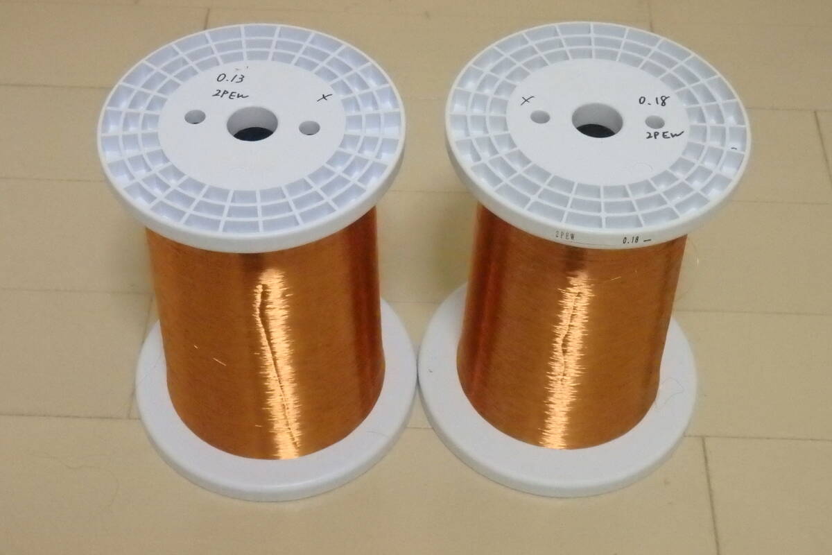 - マグネットワイヤー PEW2 0.13mm 0.18mm 重さ約11kg 2個set 傷有 ポリエステル銅線 2種 電線 コイル トランス リレー 電子部品 エナメル線