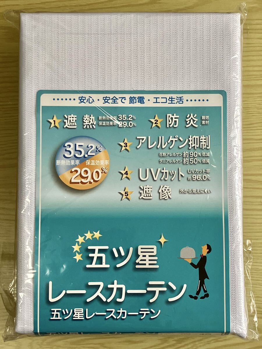 - 100x176cm 2枚組 レースカーテン フック付 UVカット 防炎 遮熱 防透視性 花粉抗アレルゲン 洗濯機OK