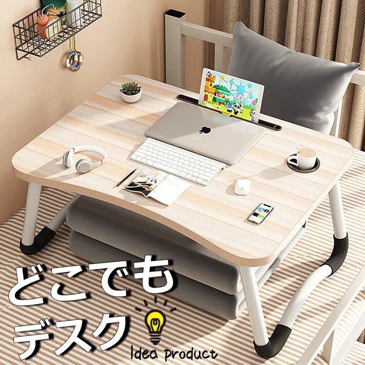 - ベッドテーブル テーブル 折りたたみテーブル 小さい 一人用 おしゃれ サイドテーブル コンパクト 7987942 ホワイト木目 新品 1円 スタート