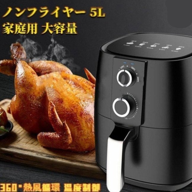- ノンフライヤー 5L 家庭用 大容量 電気フライヤー エアフライヤー 360°熱風循環 温度制御 30分タイマー 揚げ物 グリル ベーキング用