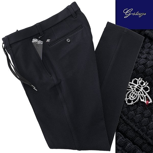 > 新品 ジーステージ バブル ニット ジャージー スラックス 44(S) 黒 【2-40506_11_44】 G-stage 永久プリーツ テーパード パンツ ブラック